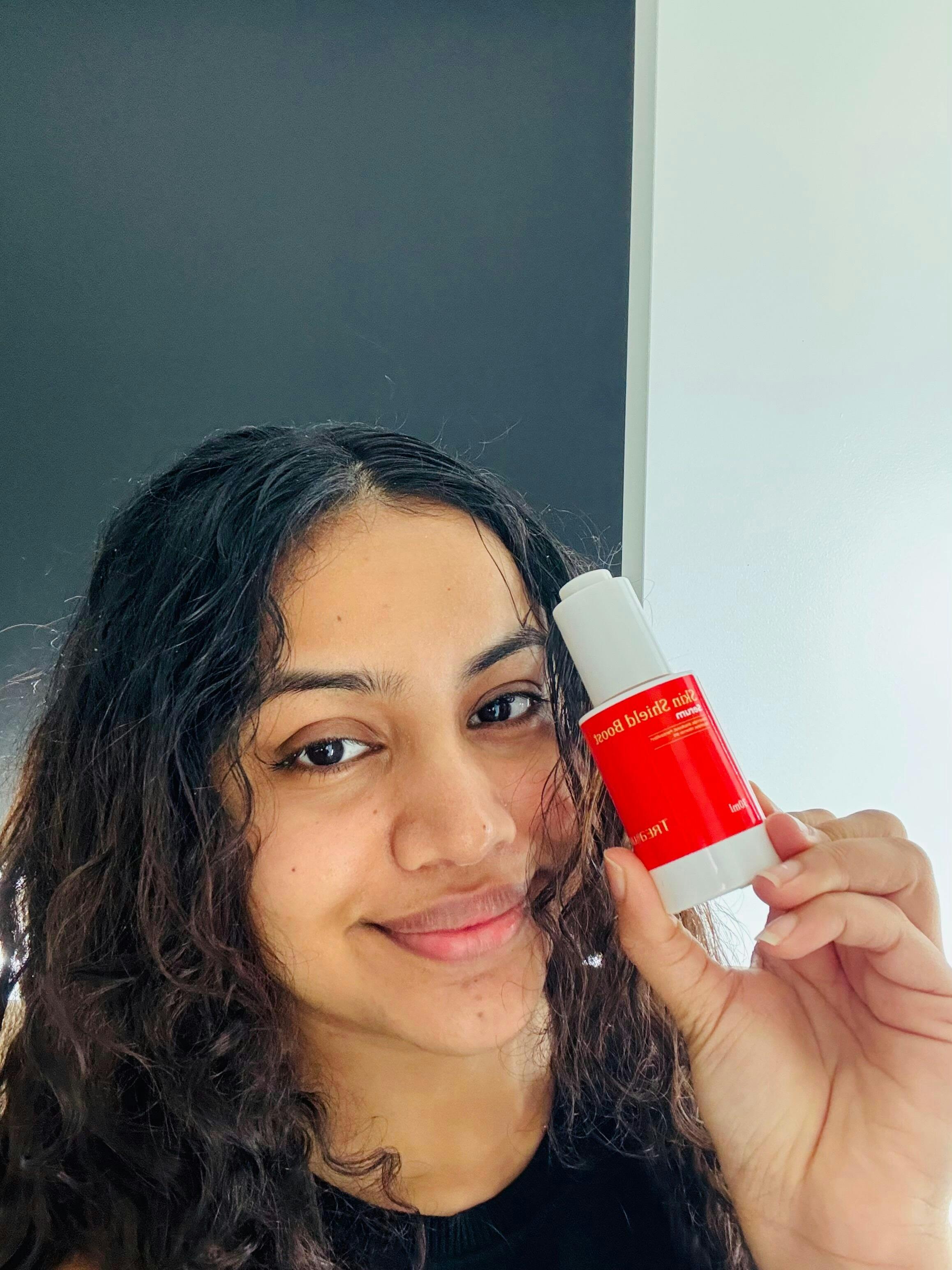 2. Apply 2-3 drops of Skin Shield Boosting Serum to clean, dry skin